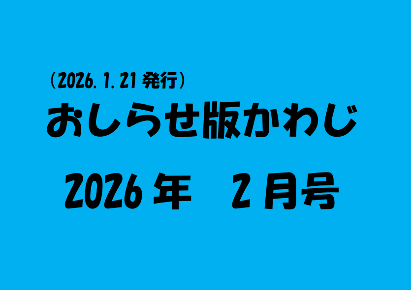 おしらせ版かわじ R8.1月 2026.01.23おしらせ版かわじ, お知らせ お知らせ版かわじR8.2【←閲覧はここをクリック】 Tweet Share RSS Pin it おしらせ版かわじ, お知らせ 1月21日組合回覧 川路ーストレッチの広場の案内&募集 関連記事一覧 おしらせ版かわじ R6.9月 おしらせ版かわじ R6.2月 おしらせ版かわじ R7.9月 おしらせ版かわじ R5.9月 おしらせ版かわじ R5.7月 おしらせ版かわじ 令和5年3月号 おしらせ版かわじ R6.12月 おしらせ版かわじ R6.4月 おしらせ版かわじ R7.12月